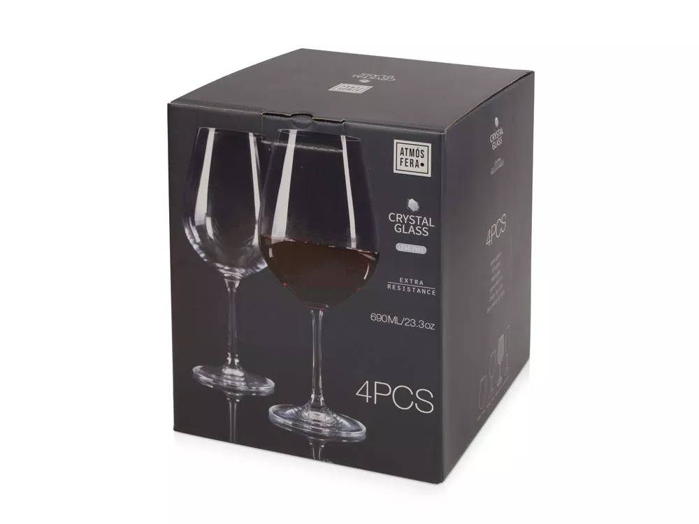 Набор Crystalline состоит из 4 изящных бокалов для вина, которые украсят праздничный стол, а так же идеально подойдут для повседневного использования. Объем 690 мл. Высота каждого бокала 24 см.