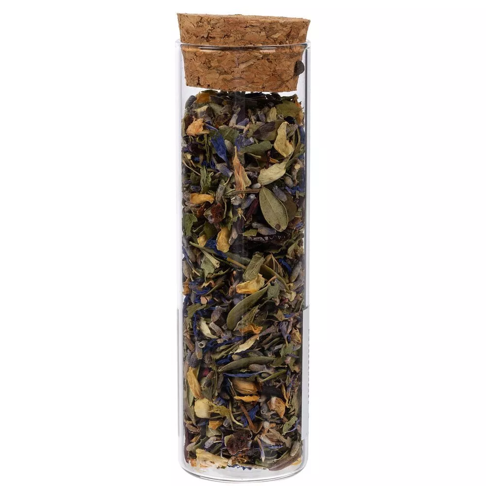 - чай травяной «Горная лаванда» (состав: цветы лаванды, цветы жасмина, шалфей, толокнянка, шиповник, ягоды шелковицы, лепестки василька, каркаде), вес 15 г;