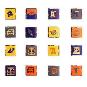 В каждой части общего рисунка изображены главные символы строительства.