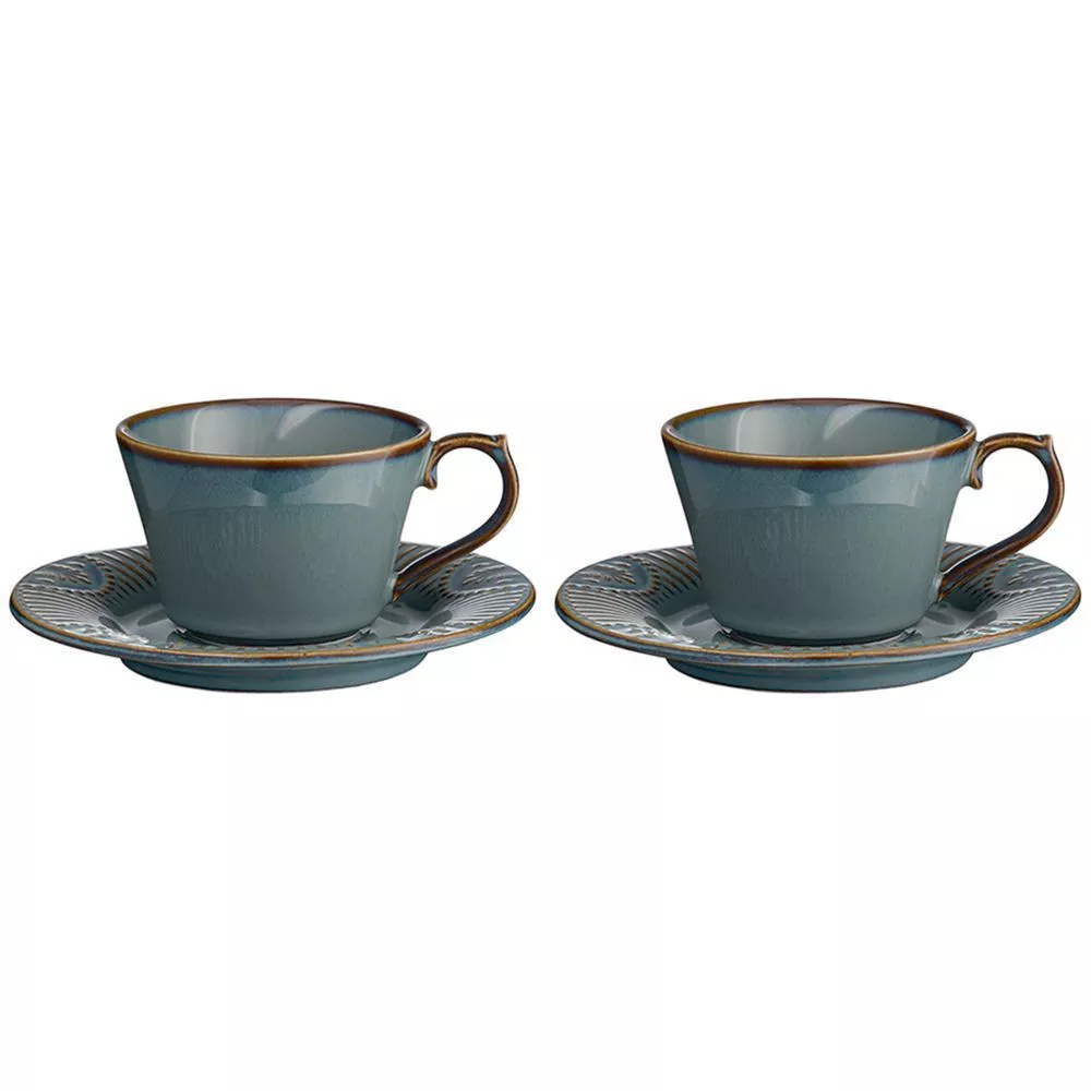 Набор чайных пар в элегантном дизайне украсит стол и разнообразит сервировку. Чашки и блюдца выполнены из высококачественного фарфора и покрыты реактивной глазурью, благодаря которой изделия приобретают неповторимую текстуру.