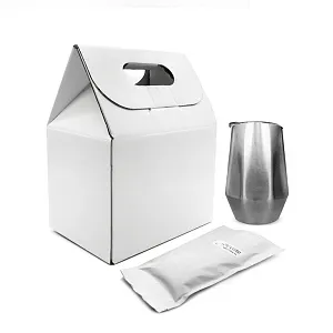 Упаковка «Coffee Box» напоминает «домик со сладостями». На крыше «домика» есть отверстия для удобной переноски. Они же создают свободное пространство, в которое можно вложить свои пожелания или послания. Внутри самой коробки расположен кофер и пакет с кофейными зёрнами.