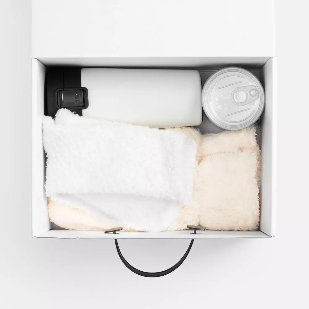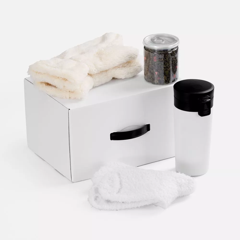 Набор создан с особой заботой: здесь не только сезонные пушистые варежки и носки, но и эргономичная термокружка с сеточкой для заваривания любимого чая, как и сам ароматный чай в придачу. В такой компании получится наслаждаться чистым насыщенным вкусом напитка в любое время и в любом месте, всегда выбирая теплую сторону.