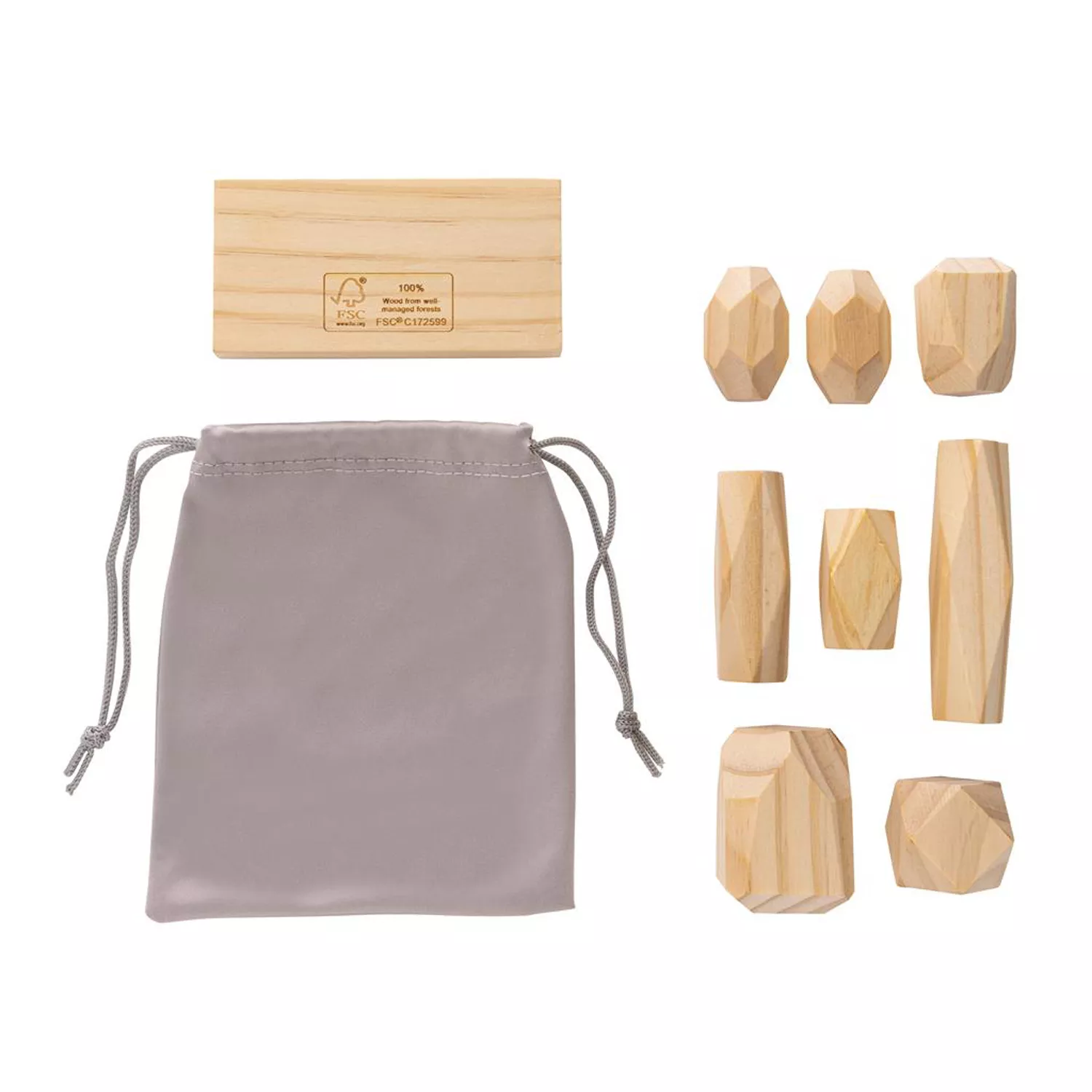 В комплект входит мешочек из переработанного полиэстера, сертифицированного GRS. Сам набор упакован в подарочную крафтовую коробку.