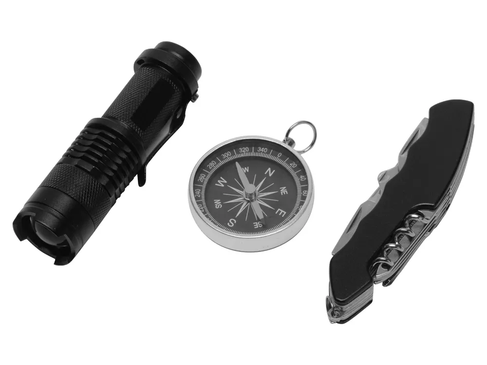 МатериалТовара:Фонарик - алюминий, компас - алюминий, мультитул - нержавеющая сталь