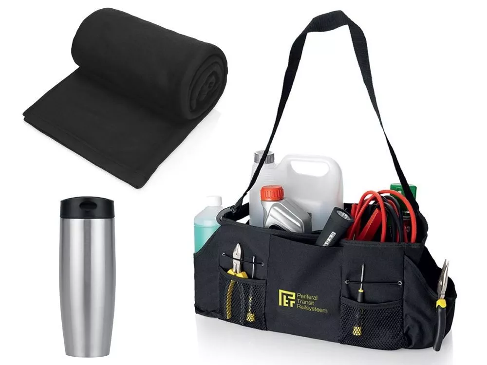 Набор для автомобиля с пледом, термокружкой в сумке для инструментов