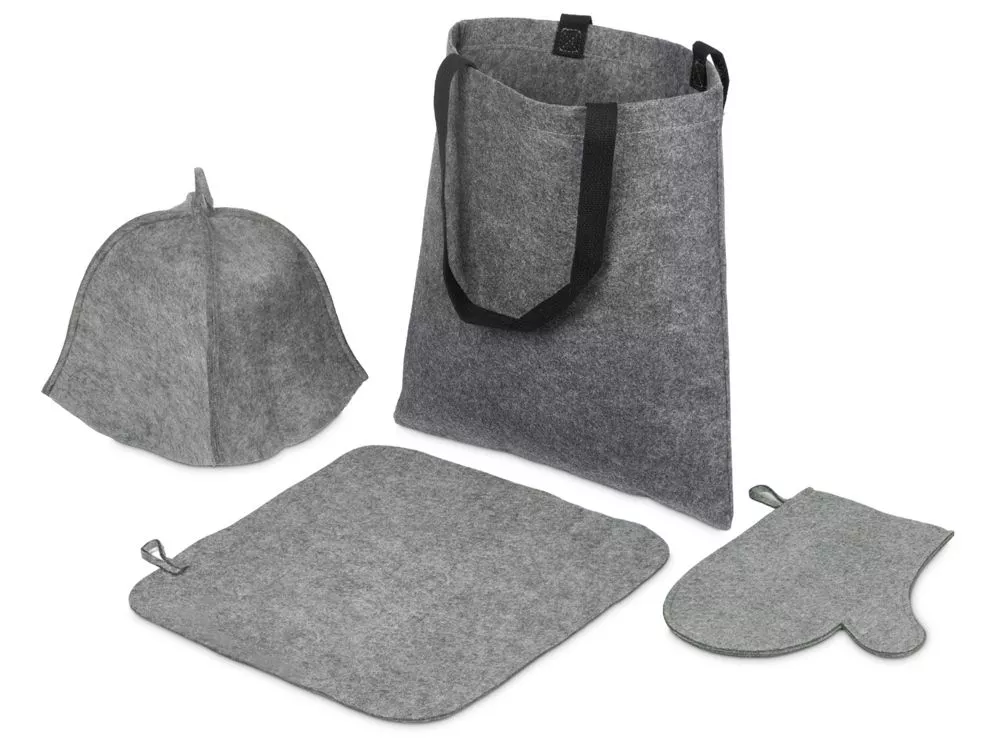 Все предметы набора для бани и сауны Healing выполнены из высококачественного войлока серого цвета, который: - Отлично впитывает влагу, - Быстро сохнет, - Не вызывает аллергии, - Защищает от перегрева, - Приятен на ощупь. Набор упакован в стильный шоппер, который станет удобной сумкой для хранения банных принадлежностей и не только! Рекомендуется ручная стирка при 30°C с использованием специальных средств для шерсти или мягкого мыла. Термотрансфер (1 цвет (цветные изделия)) на данный товар осуществляется бесплатно. Оплачивается только настройка оборудования в размере 9200 рублей на весь тираж.