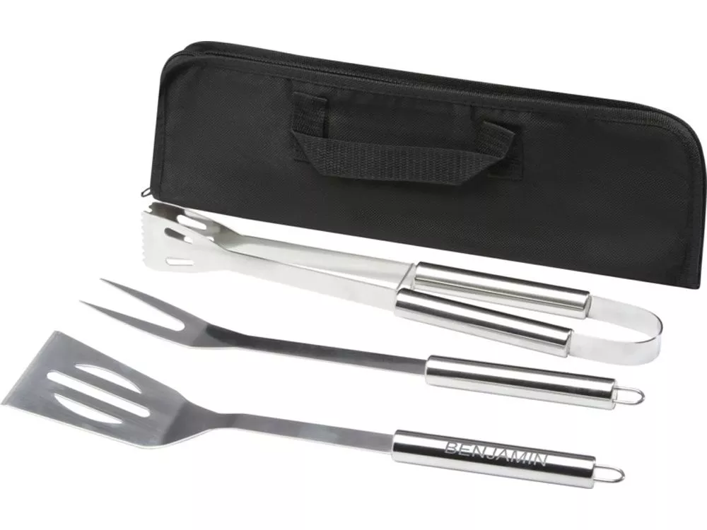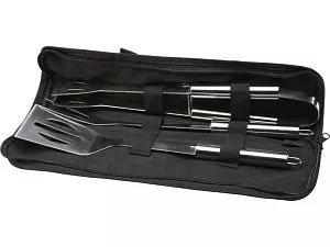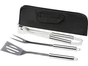 Набор для барбекю из 3 предметов: лопатка (34,8 x 7,5 см), вилка (35,4 x 3,35 см) и щипцы (35 x 6,8 x 4 см). Все аксессуары поставляются в легком футляре для удобства переноски и хранения. Идеальный аксессуар для барбекю в саду или для того, чтобы взять с собой для приготовления еды на гриле на открытом воздухе с друзьями и семьей.
