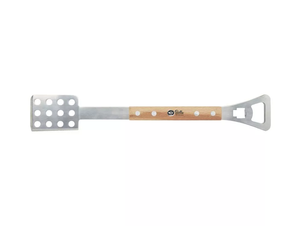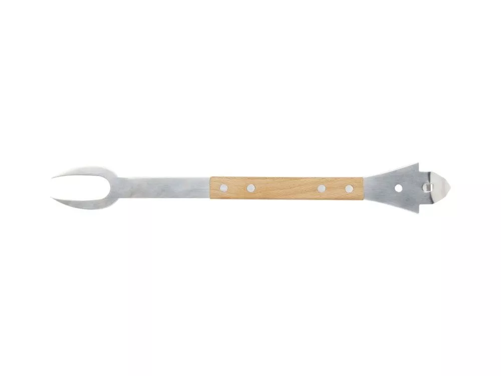 Этот удобный набор инструментов для барбекю 4-в-1 включает в себя лопатку, вилку, консервный нож и открывалку для бутылок — все они изготовлены из дуба и нержавеющей стали, сертифицированной RCS. Удобство и комфорт этого инструмента делают его идеальным подарком для любого любителя барбекю.