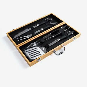 Стильный деревянный кейс не только защищает инструменты при хранении, но и позволяет легко транспортировать набор куда угодно — будь то загородный дом, пикник в парке или поездка на природу.В набор входят: щипцы, вилка, лопатка и нож.