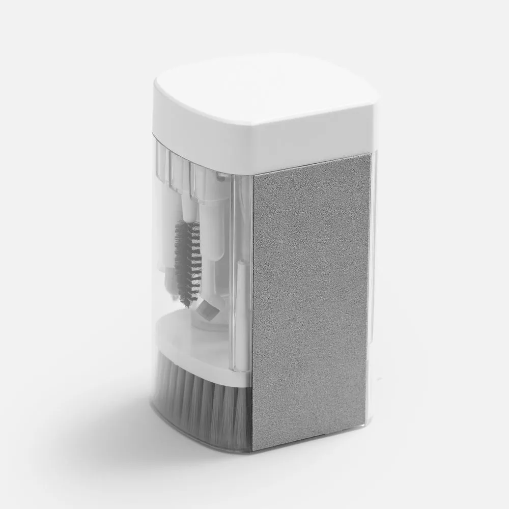 - В комплекте: большая щетка, салфетка для ухода за дисплеем, контейнер для жидкости, пластиковый пинцет, щетка с жесткой щетиной, щетка с мягкой щетиной, чистящее перо со щеткой для наушников, насадка для чистки кейса от наушников, ершик для чистки кейса от наушников, щетка с короткой щетиной, щетка с наклонной щетиной, двусторонняя насадка для чистки разъемов зарядки, двусторонняя насадка для чистки камеры, инструмент для продувки, дуговой пинцет, ключ для отсека SIM-карты, инструмент для извлечения поврежденных ключей