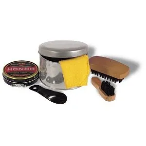 Набор для чистки обуви из 5 предметов в подарочной жестяной банке.
