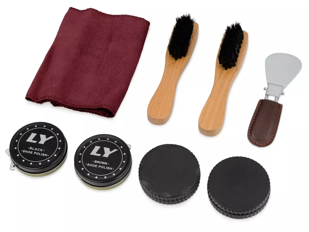 Подарочный набор для чистки обуви включает в себя 8 предметов, которые предназначены для поддержания чистоты вашей обуви. В комплект входят чистящие средства, так что не придется покупать их отдельно. Набор упакован в солидный футляр под кожу, который удобно брать в дорогу, в командировку. Набор представлен также и в других цветах.