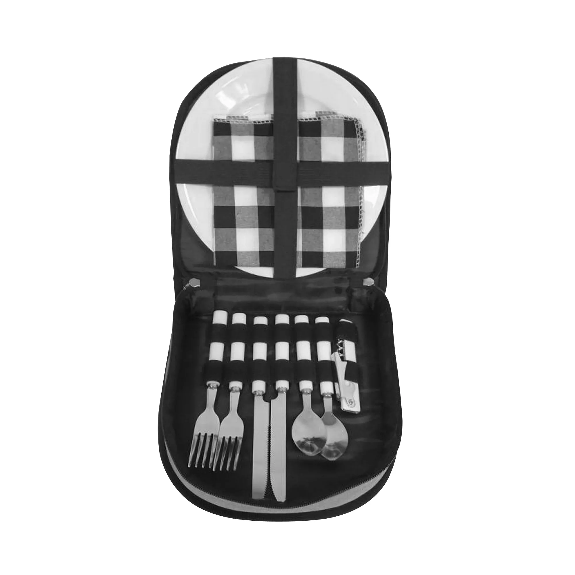 В набор входят: тарелки, ножи сервировочные, вилки, ложки, нож сомелье, салфетки.