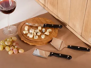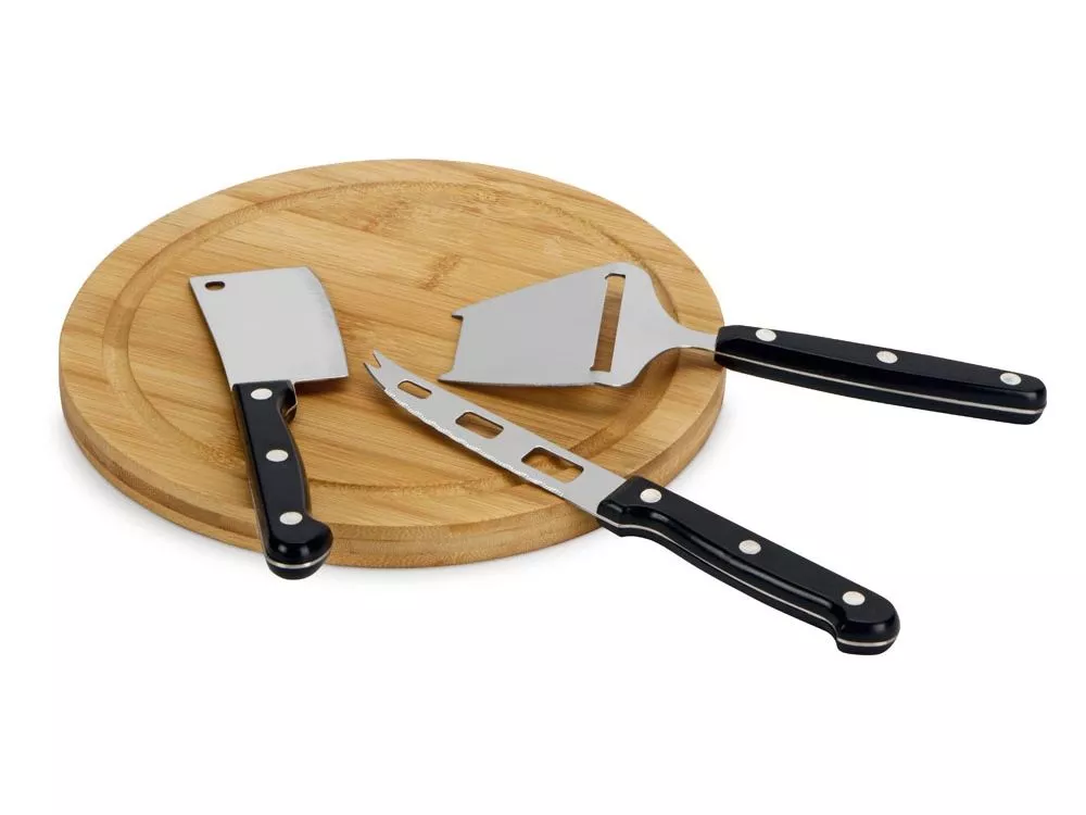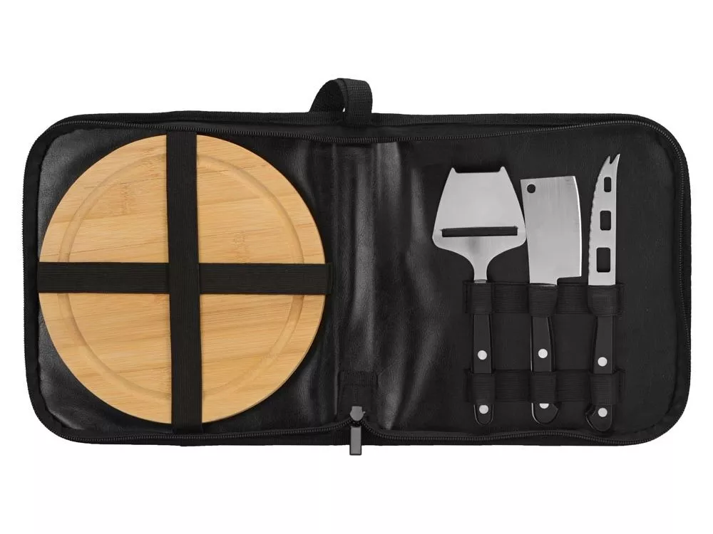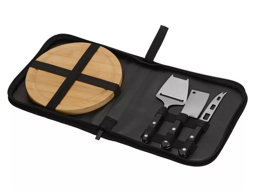 Набор для сыра не изменяет общему стилю Fabrizio: доска и три сырных ножа упакованы в чехол из искусственной кожи, который прекрасно сочетается по текстуре и цвету с другими изделиями серии. Чехол на молнии раскрывается как папка, надежно защищая принадлежности от механических повреждений и позволяя компактно и удобно хранить принадлежности. Для подвешивания и переноски предусмотрена текстильная петля на корешке. Внутри чехол имеет фиксирующие резинки для каждого ножа и доски. Три ножа позволяют грамотно подойти к подаче и сервировке практически любого сорта сыра. - Сырный топорик предназначен для нарезки полутвердых и твердых сортов — чеддера, фонтина, колби и грюйера. Благодаря ему вы сможете нарезать эти сорта на ровные прямоугольники или кубики. - Узкий нож — для мягких и средней мягкости сортов: воздушные карманы, образованные отверстиями, не дадут сыру прилипнуть к полотну и помогут ровно нарезать тонкие ломтики. - Сырный рубанок — для полутвердых и умеренно твердых сыров, с ним вы можете нарезать тонкими ломтиками алтайский, гауду, буковинский, литовский сорта. Доска выполнена из бамбука, легко моется и подходит как для нарезки, так и для сервировки закусок. - нержавеющая пищевая сталь - чехол можно брендировать тиснением, сочетается с другими товарами серии Fabrizio — идеальный вариант для сета - три ножа подходят практически для всех видов сыра - удобное и компактное хранение Тиснение (Блинт) на данный товар осуществляется бесплатно. Оплачивается только настройка оборудования в размере 6200 рублей на весь тираж.