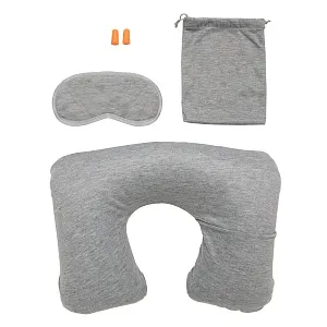 Набор для путешествий Comfort с карманом для телефона или наушников. В наборе – надувная подушка для шеи, маска для глаз, мягкие беруши и мягкая сумочка.