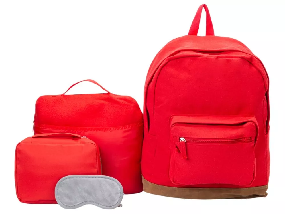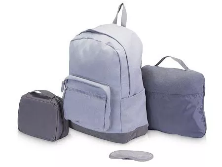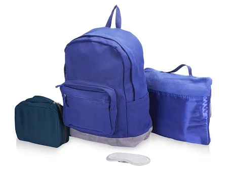 Отличное предложение для тех, кто собрался в путешествие! Рюкзак вмещает до 8 кг и прекрасно подойдет для ручной клади. Пледом можно укрыться в полете или использовать как подушку в пути или в случае длительного ожидания рейса. А чтобы сон был комфортным, воспользуйтесь маской на глаза, которую можно хранить вместе другими необходимыми для путешествия мелочами в удобном несессере. Такой набор обеспечит вам комфорт в пути и удобство в поездке на любом виде транспорта! Термотрансфер (1 цвет (цветные изделия)) на данный товар осуществляется бесплатно. Оплачивается только настройка оборудования в размере 10000 рублей на весь тираж.