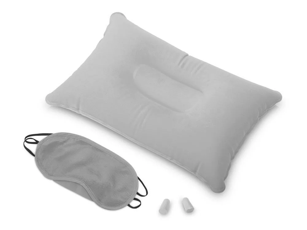 Путешествуйте с комфортом вместе с дорожным набором Cloud, который включает в себя подушку из ПВХ прямоугольной формы, повязку на глаза и полиуретановые беруши. Также в комплекте есть чехол на завязках для хранения и удобной транспортировки. Термотрансфер (1 цвет (цветные изделия)) на данный товар осуществляется бесплатно. Оплачивается только настройка оборудования в размере 7700 рублей на весь тираж.