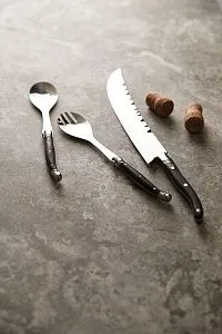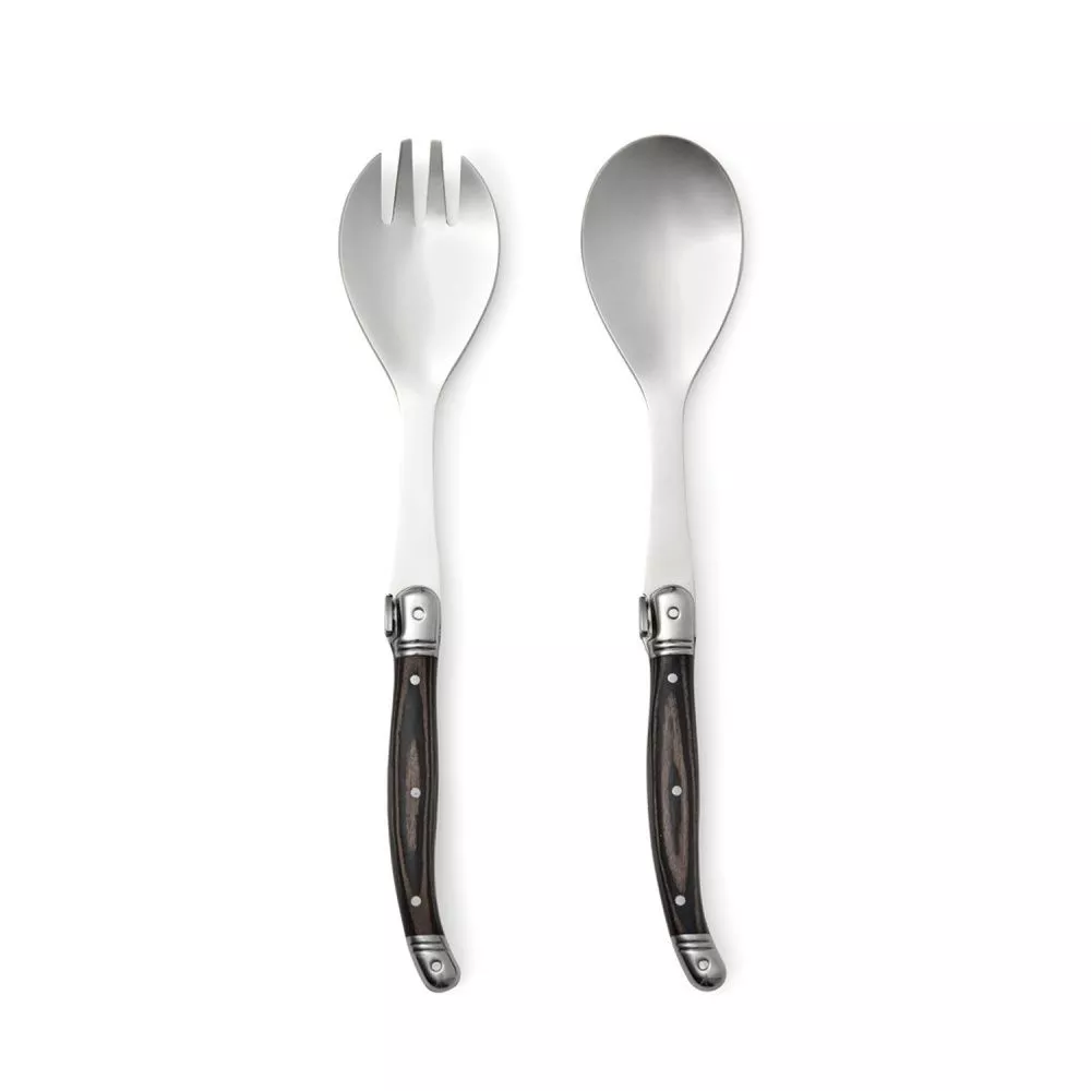 Набор Gigaro, состоящий из салатных вилки и ложки, поможет создать на кухне атмосферу французского бистро. Изящные ложка и вилка изготовлены из нержавеющей стали и паккавуда. Паккавуд — это материал, состоящий из древесины ценных пород и смолы. Так называемая ламинированная древесина получается очень прочной и долговечной, не скользит в руке, не впитывает запахи и не поддается влаге.