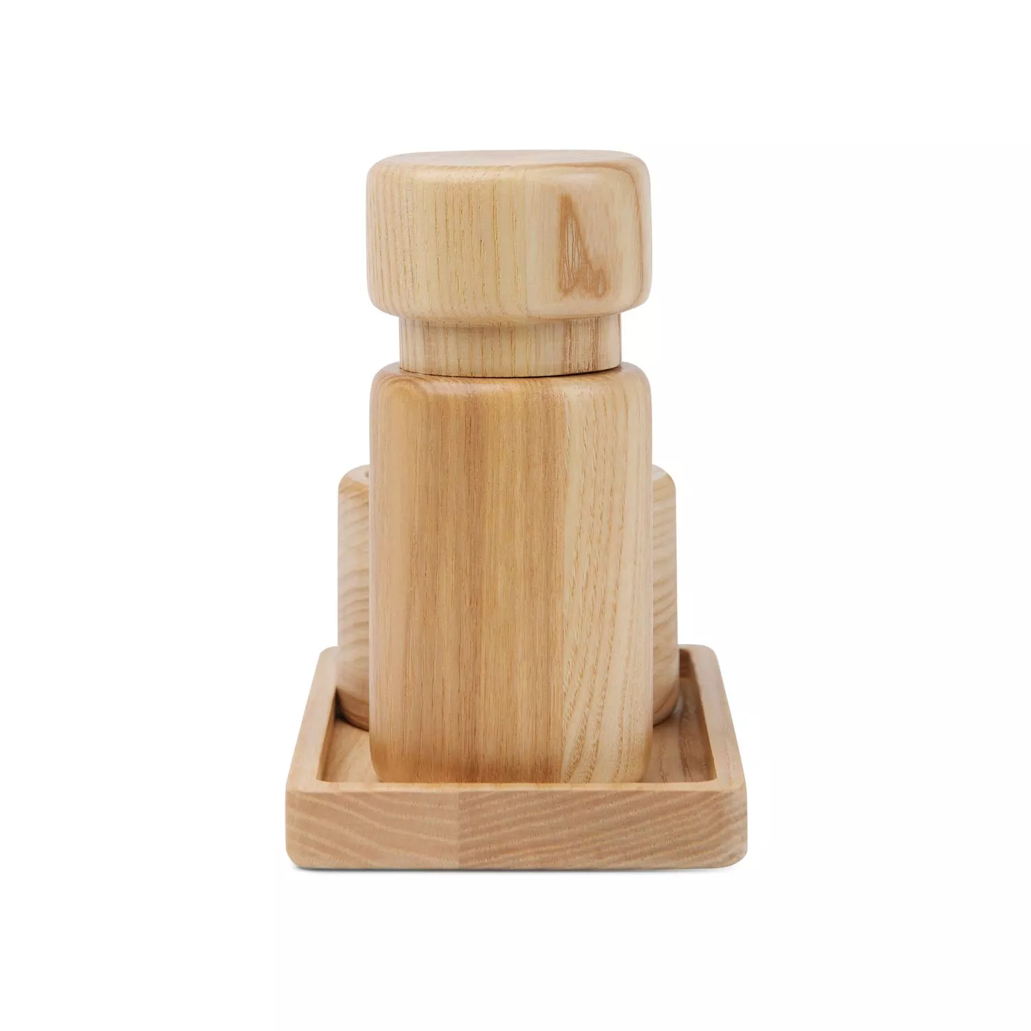 Набор Retro от VINGA — это солонка и мельница для перца, выполненные в традиционном скандинавском дизайне. Минималистичные, сдержанные, но по-домашнему уютные, они будут хорошо смотреться в любом интерьере. Набор изготовлен из древесины ясеня, сертифицированной FSC®. Внутри мельницы — керамические ножи; степень помола перца можно регулировать от крупной до самой мелкой. В комплект входит поднос для солонки и мельницы.