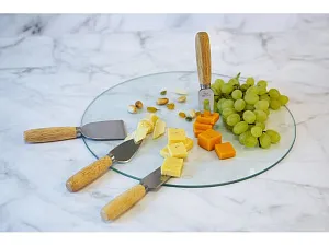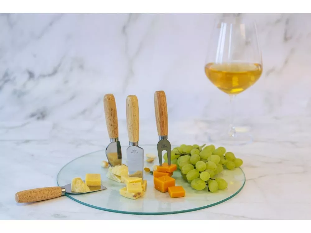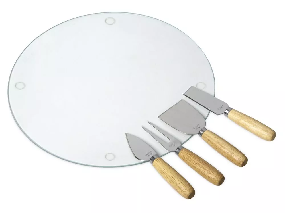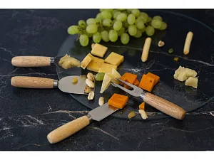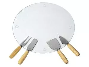 Набор для сыра от Eat&Bite состоит из стеклянной доски и ножей и предназначен для нарезки и подачи сыра разных сортов. Листовидный нож или, как его ещё называют, нож для пармезана, предназначен для твёрдых сортов сыра, которые практически невозможно порезать, скорее их нужно колоть. Нож-стамеска предназначен для очень мягких сыров, а широкая лопатка — для мягких и полутвёрдых. Двузубая вилка используется для сервировки, а также помогает при нарезании. Благодаря тому, что доска круглая и имеет диаметр 30 см, её можно использовать не только для нарезания и подачи сыра, но и для сервировки пиццы. • 3 ножа для разных сортов сыра • Вилка для сервировки • Эффектная подача сыра, закусок и пиццы Набор не рекомендуется мыть в посудомоечной машине. Гравировка (CO2 лазер) (Без чернения) на данный товар осуществляется бесплатно. Оплачивается только настройка оборудования в размере 1000 рублей на весь тираж.