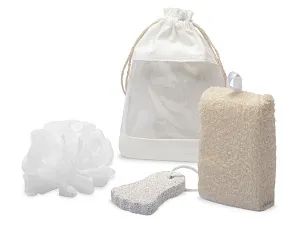 МатериалТовара:Сумка - полиэстер, хлопок с ПВХ, губка для ванны - полиэстер, мочалка - полиэтилен, пемза - известняк