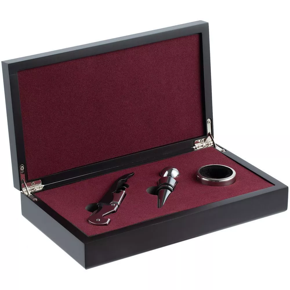 Нож сомелье поможет бережно и без усилий откупорить бутылку. Чтобы вино не расплескалось и не оставило пятна, наденьте на горлышко открытой бутылки кольцо-каплеуловитель: так капли не будут стекать на стол или скатерть. Пробка для вина сохранит свежесть и вкус вашего напитка еще долгое время после откупоривания бутылки.В набор входят: