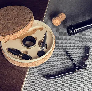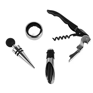 В комплекте: нож сомелье со штопором, пробка, воронка, каплеуловитель