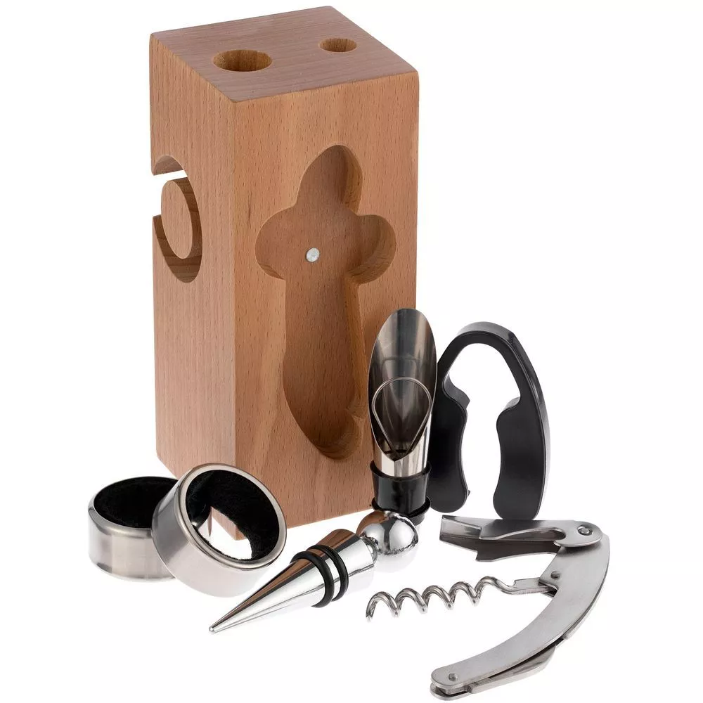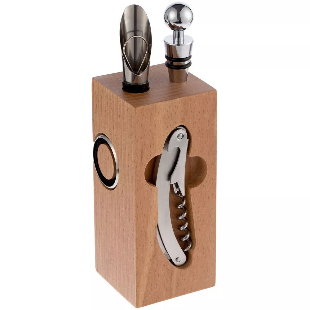 Нож сомелье поможет бережно и без усилий откупорить бутылку. Чтобы вино не расплескалось и не оставило пятна, наденьте на горлышко открытой бутылки кольцо-каплеуловитель: так капли не будут стекать на стол или скатерть. Аэратор насытит благородный напиток кислородом, раскрывая вкус и аромат вина, а вакуумная пробка надолго сохранит его свежесть в уже открытой бутылке.В набор входят:
