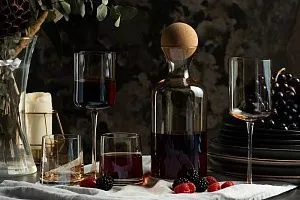 Медленно перелейте вино в декантер, а затем аккуратно раскрутите графин несколько раз по часовой стрелке для насыщения кислородом. Перед подачей рекомендуется выдержать вино в декантере в среднем около 7-20 минут: продолжительность процедуры зависит от степени выдержки напитка.