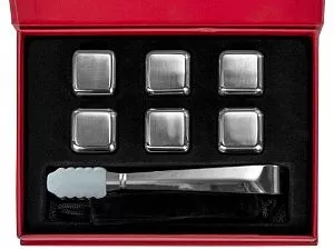 Набор для виски Skye состоит из шести охлаждающих камней из нержавеющей стали, бархатистого мешочка и удобных щипцов. Сет упакован в качественную коробку с магнитной крышкой винного цвета, а сверху надевается шубер с полиграфией, который можно заменить на какой-либо другой. Стальные камни изнутри наполнены специальной охлаждающей жидкостью (95% воды +5% глицерина), которая помогает быстрее понизить температуру напитка. Жидкость надежно запаяна, не является токсичной, не просачивается сквозь металл. Нержавеющая пищевая сталь 304 марки, из которой состоят камни, не изменяет вкус, цвет и запах напитков, в том числе и алкогольных. Ими легко пользоваться: просто поместите их в морозильную камеру за несколько часов до откупоривания виски. При желании после использования камни можно хранить в бархатном мешочке, который также можно забрендировать. Щипцы из стали помогут аккуратно разложить камни по бокалам, при этом не разбив их и не расплескав напиток. Но не забудьте тщательно промыть щипцы и камни перед первым использованием. - можно дарить: поставляется в коробке с магнитной крышкой, с качественным ложементом - стальные камни не впитывают цвет и запах напитка - щипцы позволят удобно зацепить камни - бархатный мешочек в комплекте для альтернативного хранения Гравировка (оптоволоконный лазер) (Без чернения) на данный товар осуществляется бесплатно. Оплачивается только настройка оборудования в размере 1000 рублей на весь тираж.