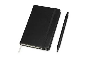 Набор для записей Альфа выдержан в строгом деловом стиле. В него входит линованный блокнот формата А6 с закладкой, эластичной застежкой и удобным карманом для карточек и записок, а также шариковая ручка в пластиковом корпусе с нажимным механизмом. Ручка и блокнот вложены в подарочную коробку. Набор Альфа отлично подойдет в качестве подарка к профессиональному празднику или сувенира на память о мероприятии.