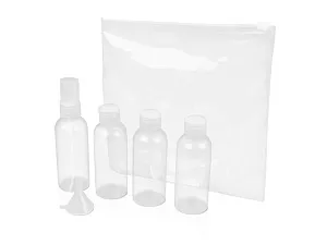 Собирая чемодан, мы всегда стремимся уменьшить вес и объем дорожной сумки. Дорожный набор Tokyo в этом деле первый помощник. В набор входят три бутылки, объемом в 80 мл., 1 бутылка-спрей и мини-воронка. В эти бутылочки легко перелить необходимые косметические средства, чтобы не тащить с собой целый флакон. Упакован в прозрачную пластиковую косметичку на молнии.