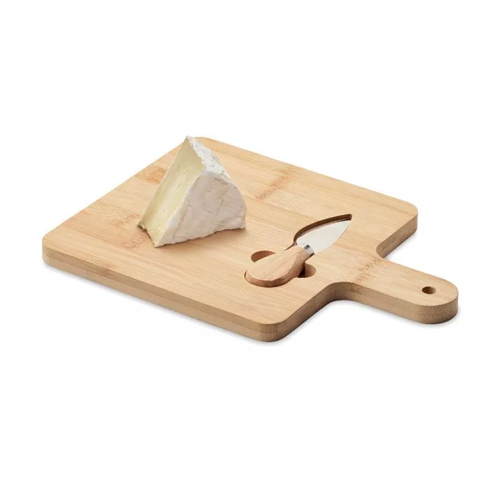 Бамбуковая сервировочная доска для сыра в комплекте с ножом.