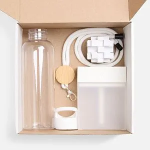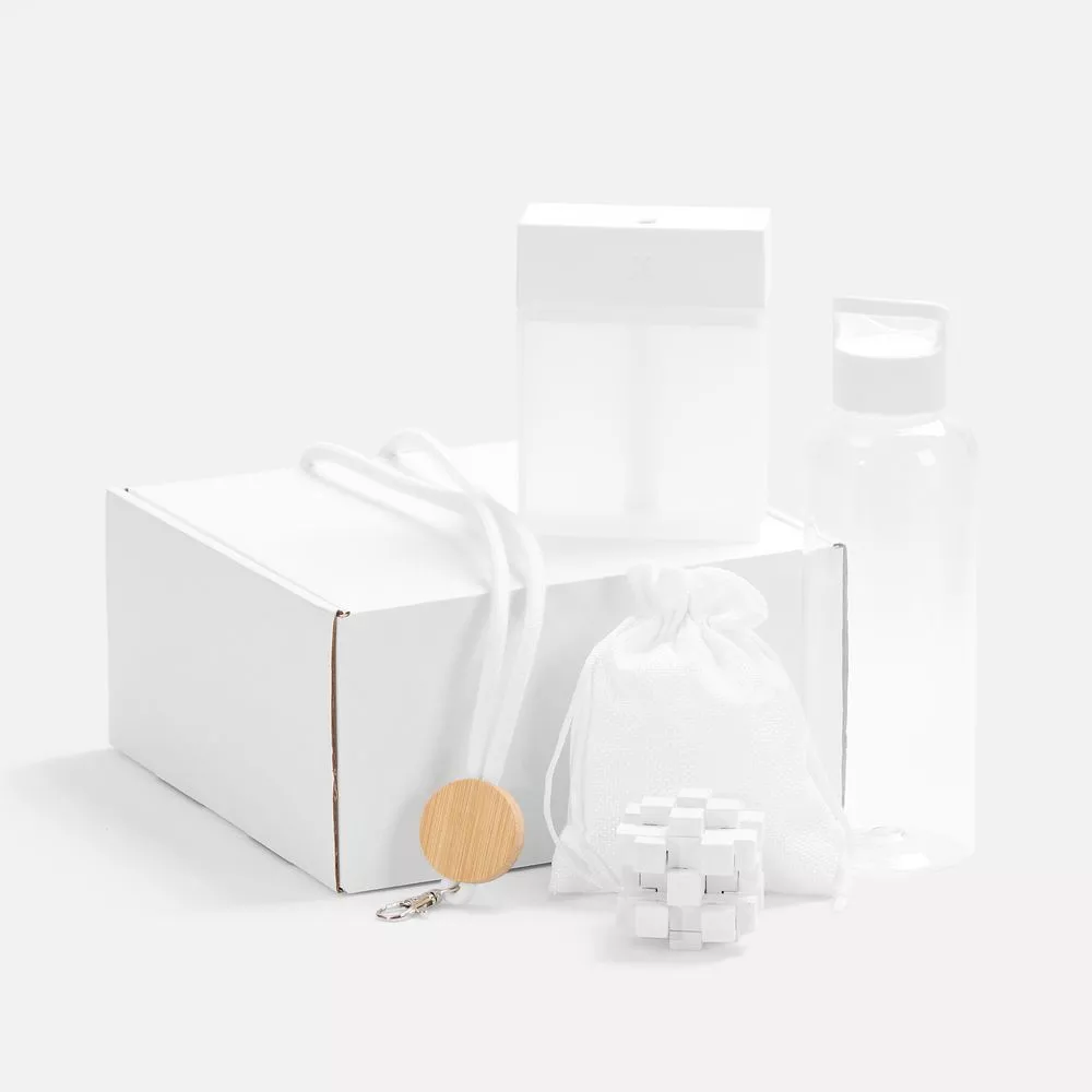 Набор собран с заботой: помимо надёжного шнурка для бейджа — для быстрой идентификации на новом месте — здесь есть полезные аксессуары для гидратации как внешней, так и внутренней: компактный увлажнитель воздуха и стильная бутылка для воды. А дополняет эти функциональные предметы игра-головоломка, которая поможет и развить пространственное мышление, и переключить внимание — а в первые рабочие дни разгружать голову просто необходим/