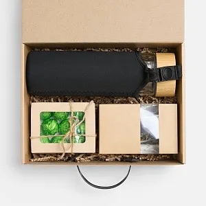 Грильяж в наборе порадует богатством вкуса, а чай подарит силы и энергию на целый день. Термобутылка из боросиликатного стекла подходит для традиционного и холодного заваривания, что особенно ценно для всех чайных гурманов: ее удобно брать с собой, наслаждаясь любимым напитком, когда захочется.
