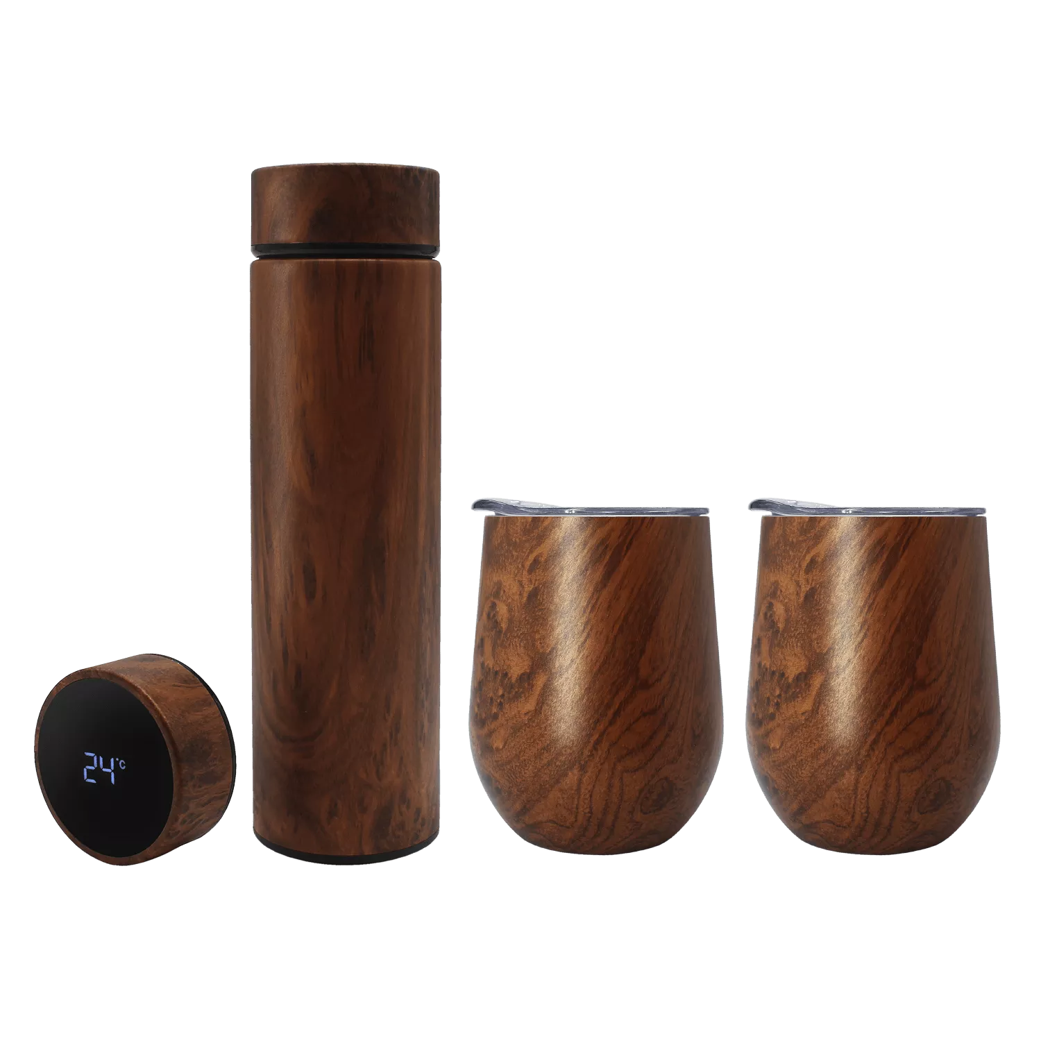 Термос Reactor design является воплощением минималистического дизайна. На крышке находится сенсорный дисплей, который показывает температуру напитка. Термос выполнен из пищевой стали и сохраняет напиток горячим до 15 часов и холодным до 17 часов. Также в комплектации съемное ситечко.