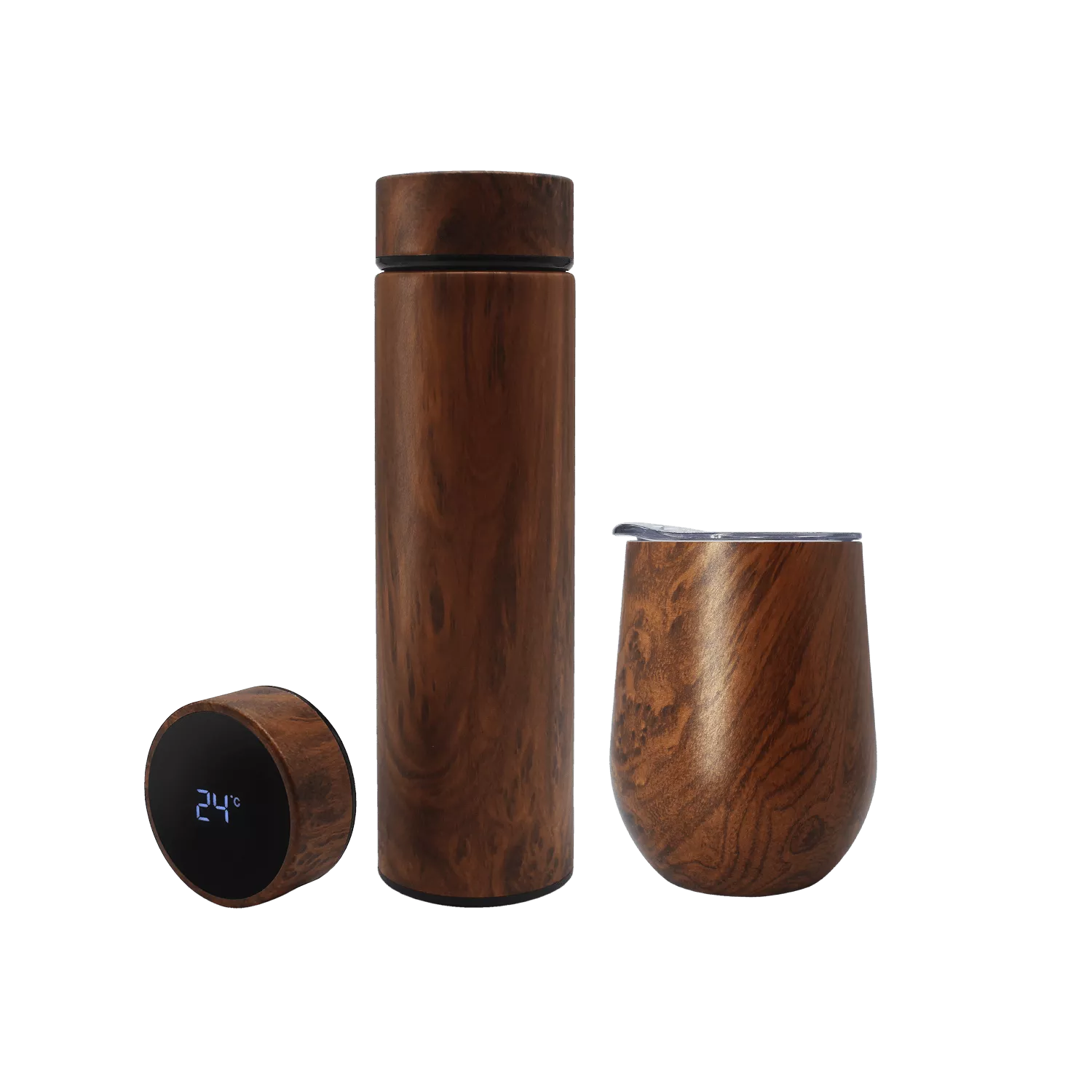 Термос Reactor design является воплощением минималистического дизайна. На крышке находится сенсорный дисплей, который показывает температуру напитка. Термос выполнен из пищевой стали и сохраняет напиток горячим до 15 часов и холодным до 17 часов. Также в комплектации съемное ситечко.