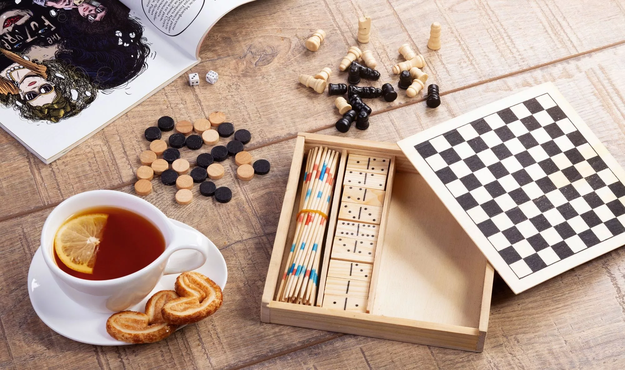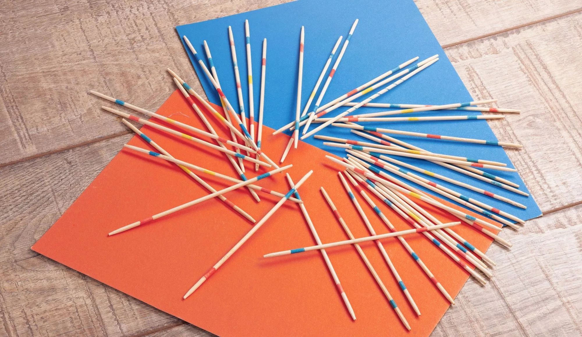 - Микадо: Игра на ловкость и внимательность для компании до 8 человек, где нужно аккуратно вытаскивать палочки, не задев остальные.