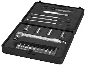 Набор из 20 инструментов в маленькой коробочке. В комплекте три отвертки, 10 насадок в холдере: три размера Philips (PH0, PH1, PH2) три плоских (4,5,6 мм), три звездочкой (Т10, Т15, Т20) и 1 адаптер; четыре ключа ( 7, 8, 9, 10 мм), один ножик, ручка и коннектор. Упакован в коробку STAC. АБС пластик. Тампопечать (1 цвет (цветные изделия)) на данный товар осуществляется бесплатно. Оплачивается только настройка оборудования в размере 4000 рублей на весь тираж.