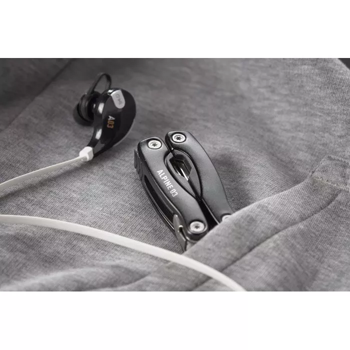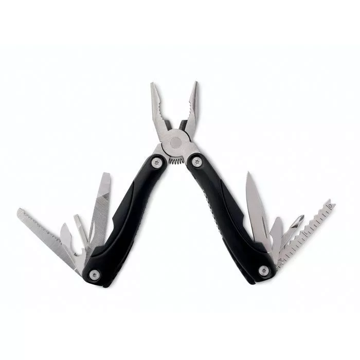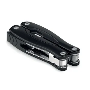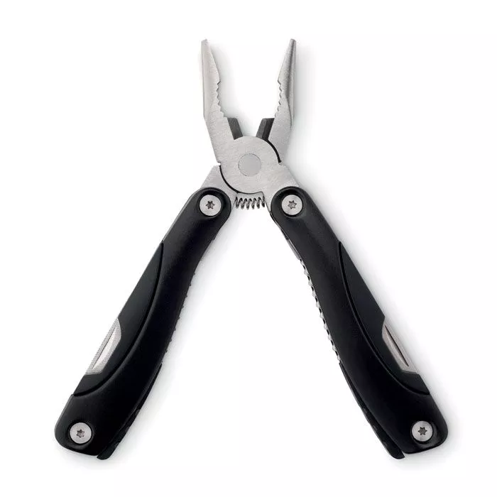 Металлический складной набор инструментов из 9 предметов в мешочке из полиэстера.