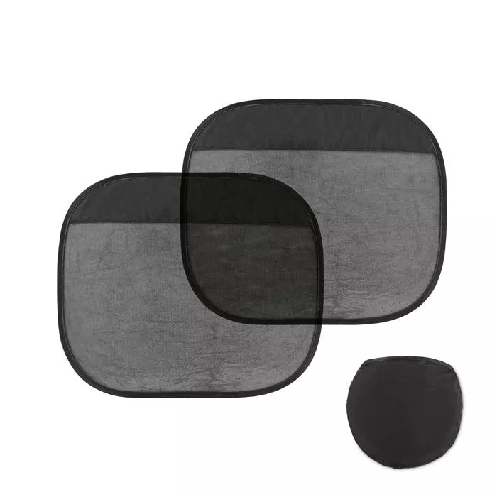 Набор из 2 самоклеящихся автомобильных солнцезащитных штор с УФ-покрытием (SPF50). Поставляется в мягкой сумке на шнурке.