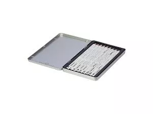 Универсальный набор чернографитовых карандашей с диапазоном твердости от HB до 14В. Корпус карандашей произведен из термообработанной липы, вязкость и плотность которой позволяет надёжно удерживать грифель и сохранять качество заточки на высоком уровне. Сам грифель проклеен и отцентрован, что гарантирует ударопрочность при падении карандаша. Карандаши имеют трехгранную форму и увеличенный диаметр - дополнительный комфорт в работе и увеличение срока службы. Оригинальный и узнаваемый дизайн, комплектация в металлической коробке - идеальный вариант для подарка. Гравировка (оптоволоконный лазер) (Без чернения) на данный товар осуществляется бесплатно. Оплачивается только настройка оборудования в размере 1100 рублей на весь тираж.