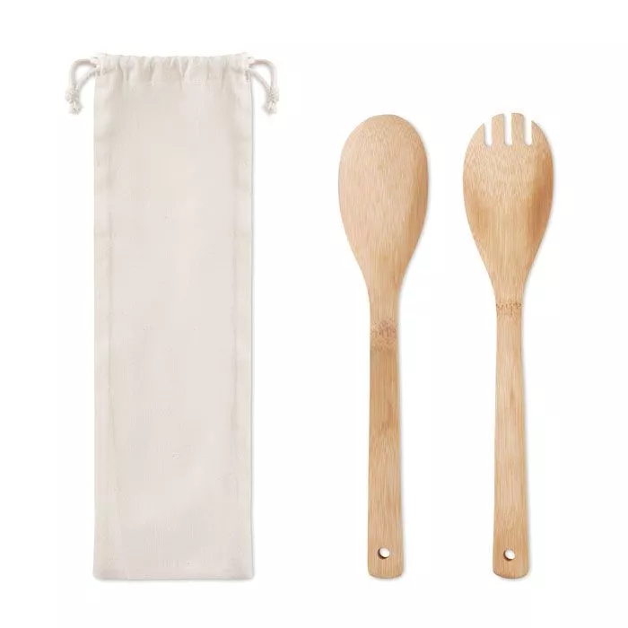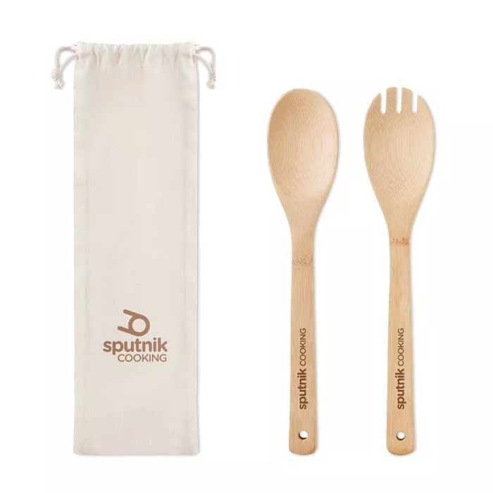 Набор из бамбука для салата. Поскольку бамбук является натуральным материалом, цвет каждого элемента может варьироваться.