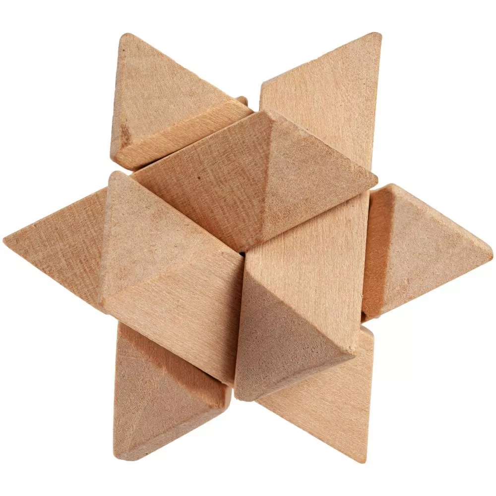 В наборе 3 деревянных головоломки, инструкция, мешочек.