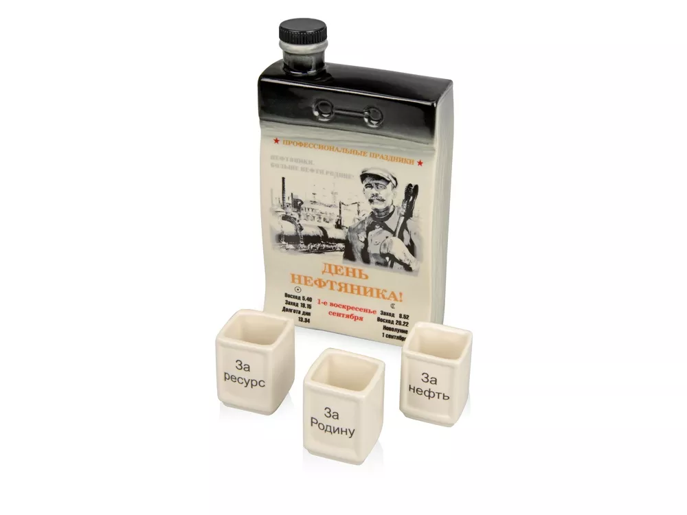 Стильный набор из штофа и рюмок стилизованный под профессиональный календарь станет креативным подарком к профессиональному празднику. Штоф и рюмки изготовлены из высококачественного фарфора. На каждой рюмке написано оригинальное послание-тост. Упакован подарок в коробку стилизованную под календарь. Идеальный и оригинальный подарок, чтобы поздравить сотрудника или руководителя с профессиональным праздником