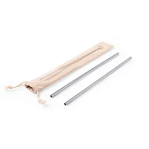 Коктейльные трубочки (2шт) для многоразового использования, из нержавеющей стали. В комплекте также ершик для очистки и чехол из 100% хлопка с затягивающейся тесьмой для хранения и переноски Приверженцы отказа от одноразовой посуды по достоинству оценят такой подарок. Трубочки удобно использовать, носить с собой, хранить и чистить. Индивидуальная упаковка - полиэтиленовый
