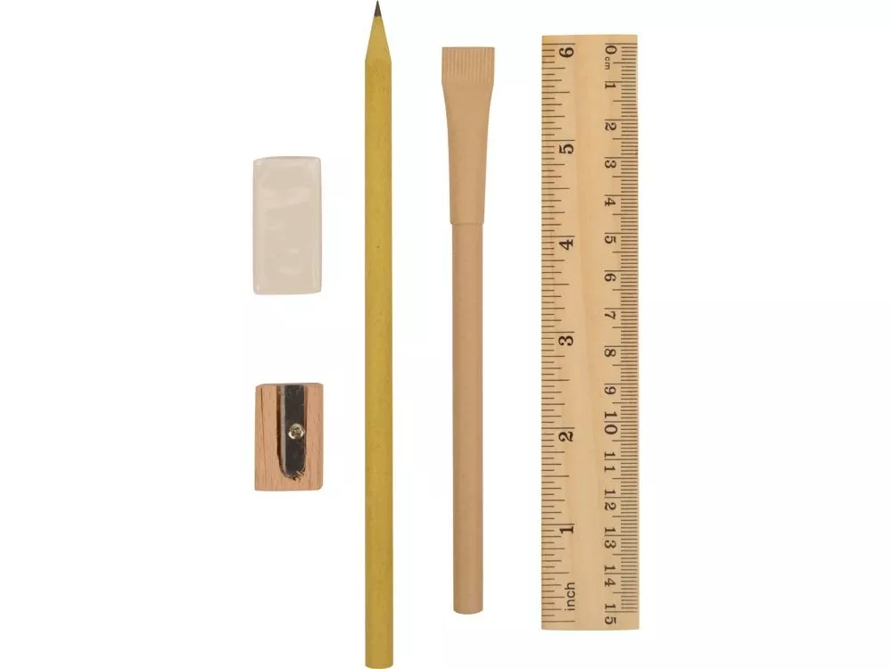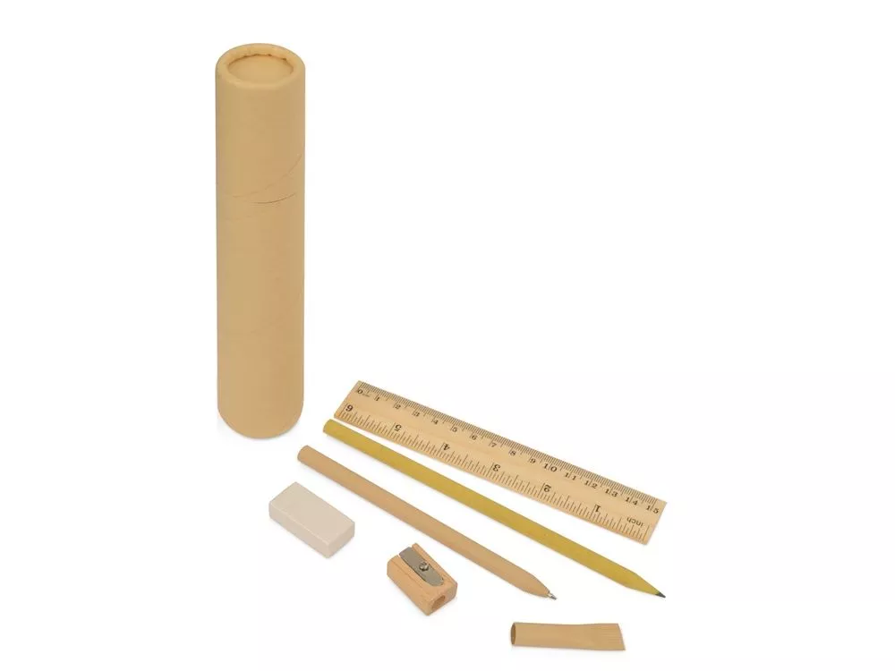 Универсальный набор канцелярских мелочей, который подойдет как для офиса, так и для дома. Удобно хранить или брать с собой благодаря упаковке в виде тубуса. В состав набора входят: - Шариковая ручка; - Карандаш; - Линейка; - Ластик; - Точилка. Гравировка (Без чернения) на данный товар осуществляется бесплатно. Оплачивается только настройка оборудования в размере 500 рублей на весь тираж.