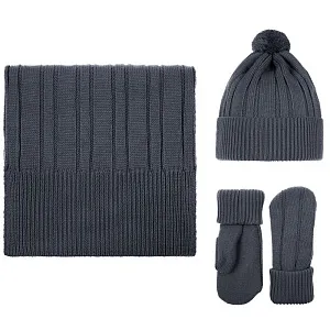 Шарф фактурной вязки из акриловой пряжи и однослойня шапка с широким отворотом и мягким помпоном создают гармоничный дуэт, обеспечивающий надежную защиту от холода. Варежки с утепляющим флисовым подкладом надежно защищают руки от мороза, а эластичная манжета предотвращает попадание снега. Набор выполнен в единой цветовой гамме, что делает его идеальным решением для создания цельного зимнего образа.