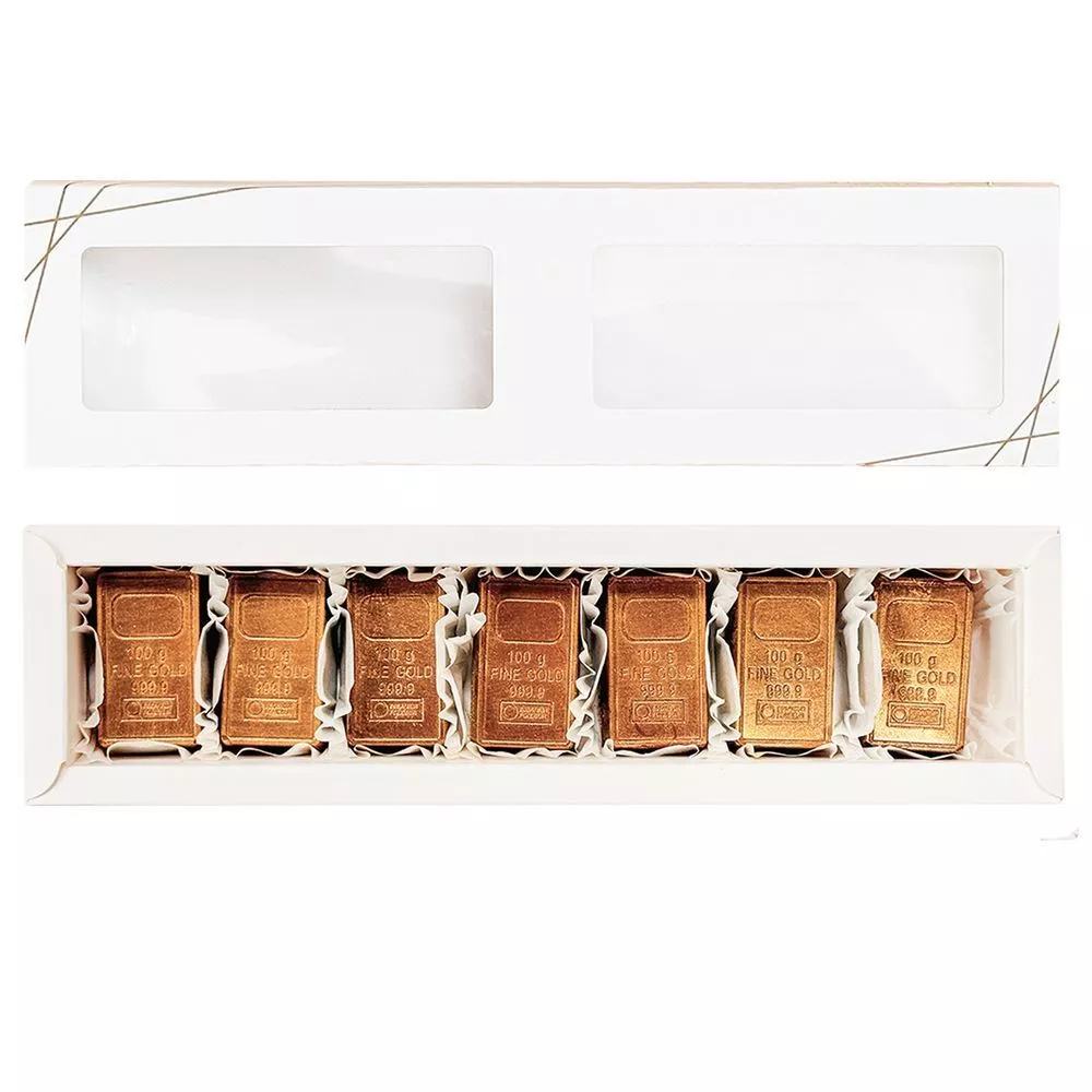 Каждая конфета — это миниатюрный золотой слиток, блестящий и манящий, как настоящее сокровище. Растопите его во рту и насладитесь неповторимым вкусом: мягкий молочный шоколад идеально дополняет пикантную сладость соленой карамели, создавая гармоничный и незабываемый вкус.