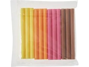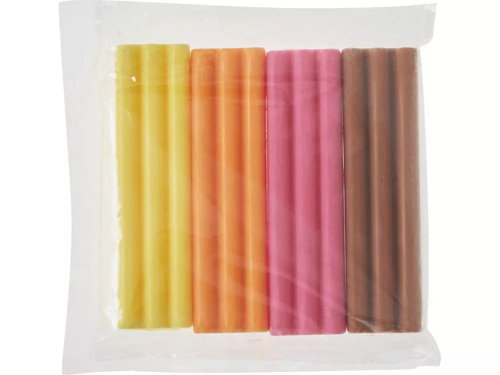 Яркие и необычные конфеты в форме, напоминающей пластилин, создают праздничное настроение и радуют глаз. Изготовлены из качественных ингредиентов. В каждом наборе — 4 ярких вкуса: банан, апельсин, малина и солёная карамель! Состав: сахар, какао масло, какао порошок, тёртое какао, миндаль, ароматизаторы (Ванилин, Шоколад), пищевой краситель, эмульгаторы (лецитин соевый Е 322, Е476). Может содержать следы молочных продуктов, фундука, арахиса.